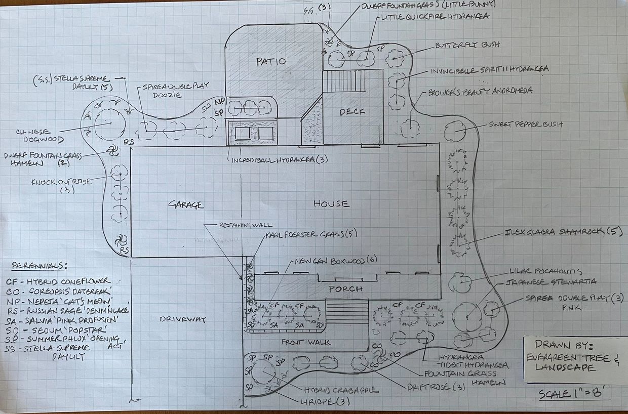Landscape design has been a cornerstone of Evergreen for more than 40 years. Focusing on the design and construction of new garden beds and the renovation of existing plantings, Evergreen will work with you to transform your yard into one that will make the neighbors jealous! Whether it’s adding annuals to accent and existing planting, adding a few new trees, or creating large beds that will put on a show all season long, we have you covered. Equipped with the right tools for the job, our experienced crew gets the job done safely and efficiently. Larry, with his decades of experience, works together with you to create a plan that will give you a yard that you will enjoy all year long. Estimates are always free, call to set up your appointment today!